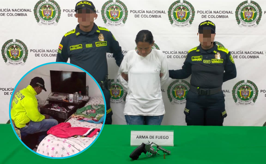La Policía realizó la captura en flagrancia durante un allanamiento en el que fue hallado un revólver calibre 38, presuntamente usado en atracos a comercios. La mujer guardó silencio sobre el paradero de su pareja, señalado de los robos.
