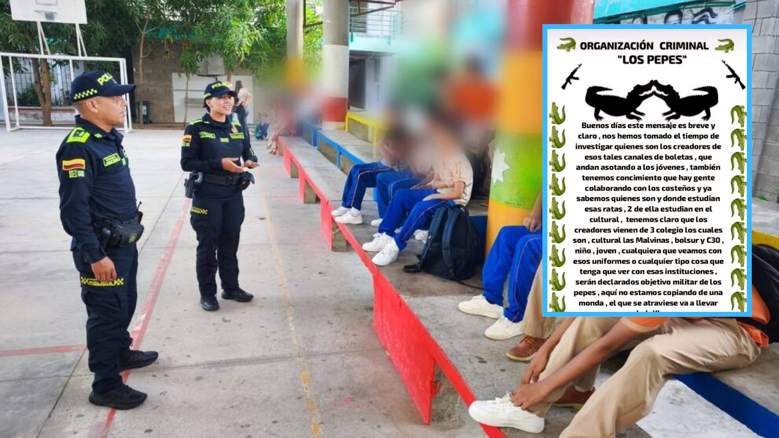 Un documento atribuido a ‘Los Pepes’ puso en la mira a estudiantes de tres instituciones del sur. La Policía reforzó la seguridad mientras familias retiran temporalmente a sus hijos ante el temor de ataques.