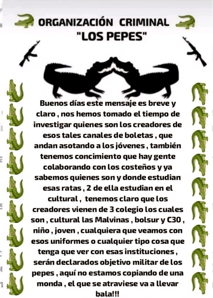 La advertencia es abierta. Cualquier persona que porte el uniforme de estas instituciones queda expuesta. La amenaza no distingue nombres. Apunta a toda la comunidad educativa.