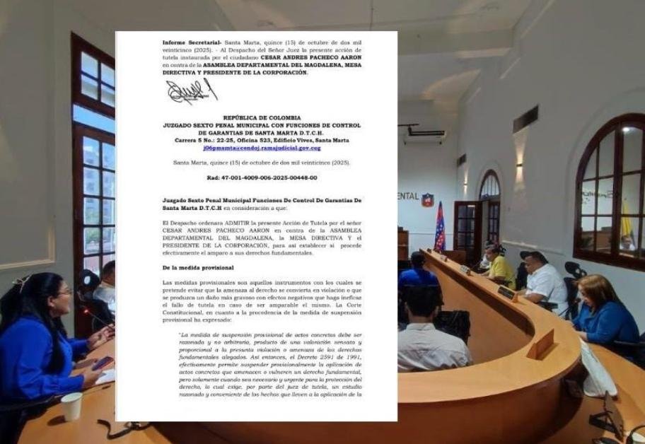 La orden del juez no solo suspende el funcionamiento de la Duma, sino que vincula al gobernador del Magdalena y a la Procuraduría Departamental como terceros interesados en el proceso. Además, exige a la Asamblea rendir un informe detallado de los hechos en un plazo máximo de dos días.