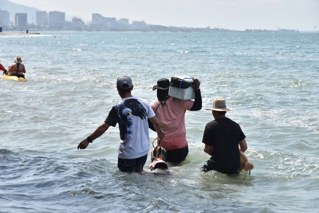 Las imágenes captadas por el reportero Montiner Alvis muestran una escena que alarma: visitantes y trabajadores obligados a entrar al agua para poder desplazarse entre puntos del sector, porque la franja costera desapareció en varios tramos.