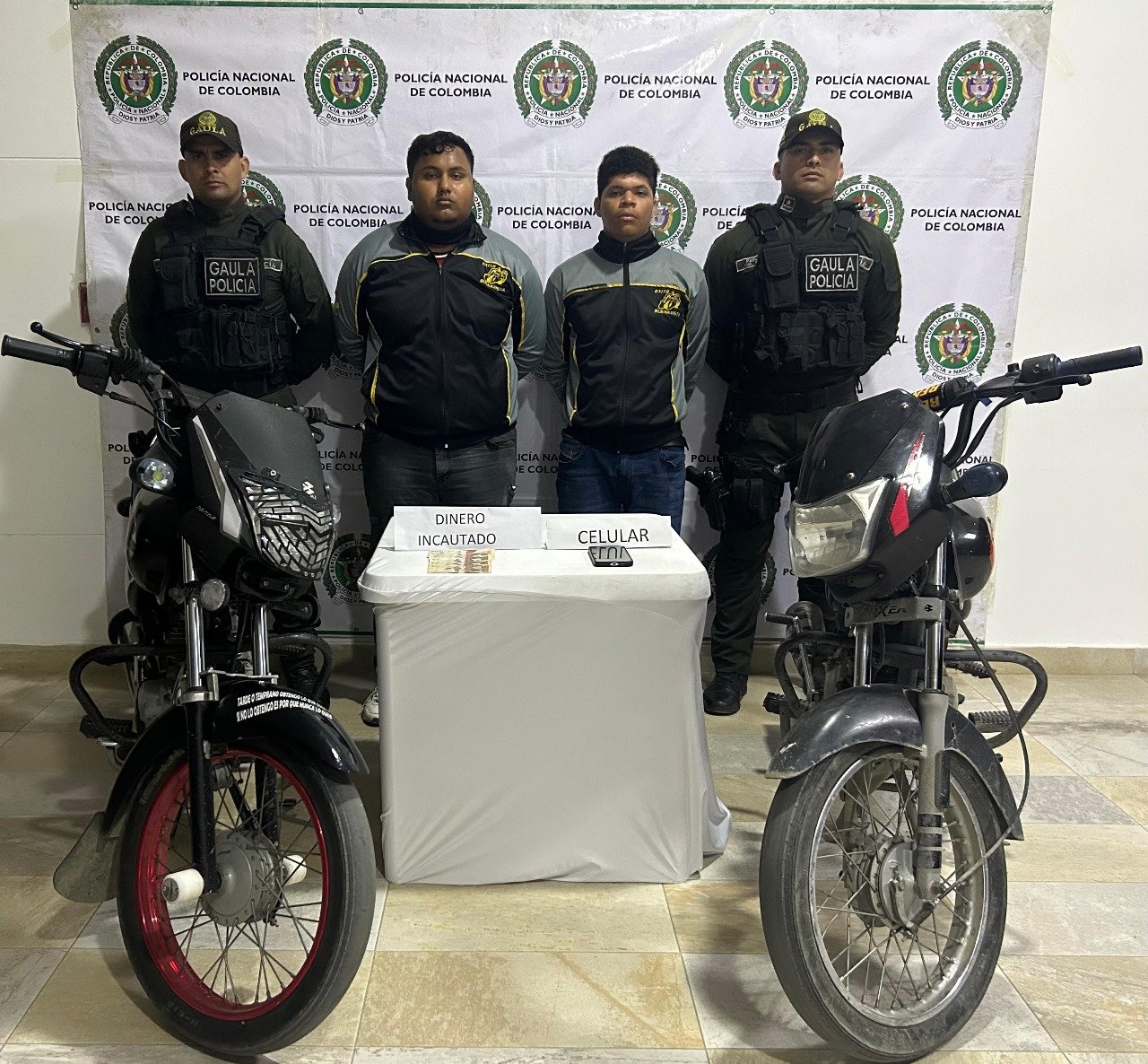 Durante el procedimiento, desarrollado en el barrio Mamatoco, se incautaron dos motocicletas, dos teléfonos celulares y 180.000 pesos en efectivo, presuntamente producto de las extorsiones.