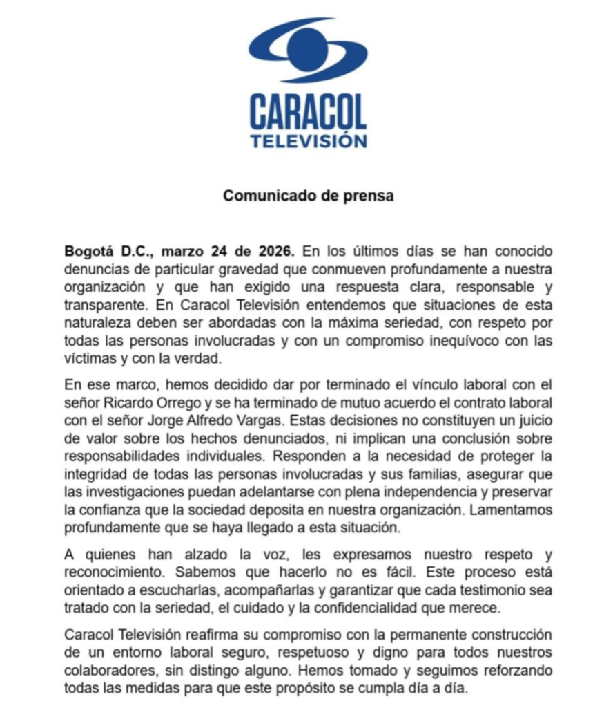 «Situaciones de esta naturaleza deben ser abordadas con la máxima seriedad, con respeto por todas las personas involucradas y con un compromiso inequívoco con las víctimas y con la verdad» Aseguró el canal.