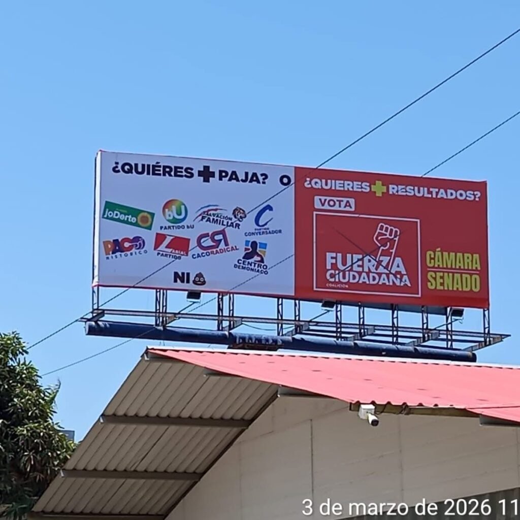 La publicidad que hoy está en el centro de la polémica no pasa desapercibida. De un lado aparecen logos de partidos tradicionales, incluido el del presidente Gustavo Petro, señalados con una frase provocadora: “¿quieres más paja? Y abajo ni mierda”. Del otro, la imagen de Fuerza Ciudadana, presentada como la opción de “resultados”, invitando a votar Senado y Cámara.