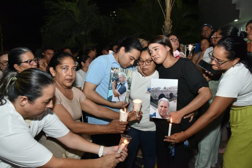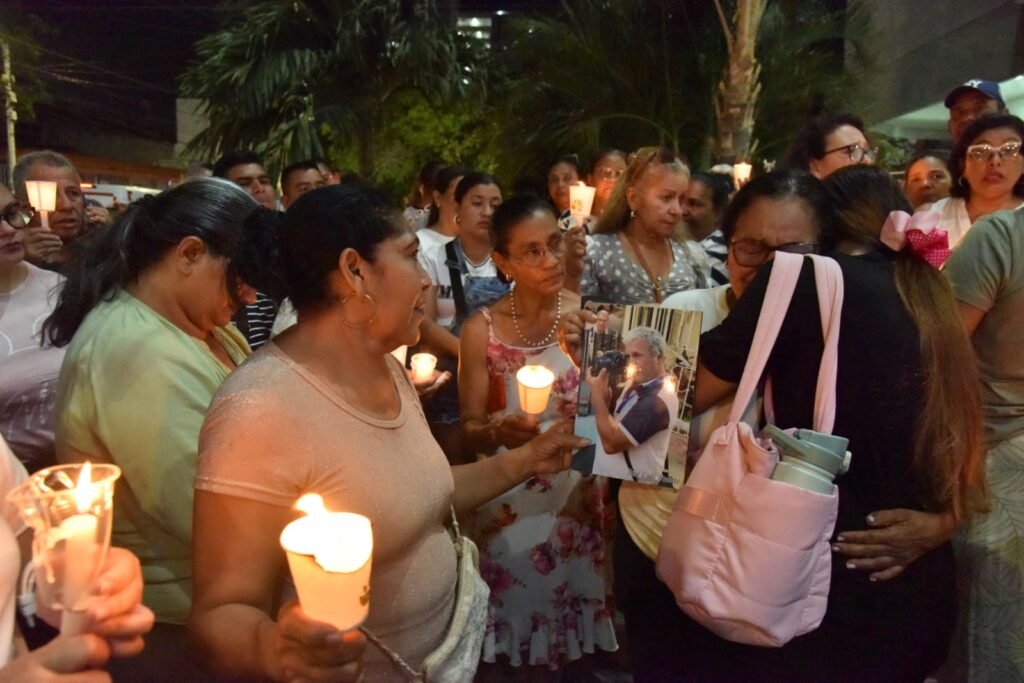 A las seis de la tarde de este martes, el silencio frente a la Clínica Bahía se rompió con oraciones y voces de denuncias. Decenas de personas encendieron velas por José Luis Puentes, el fotógrafo que hoy lucha por su vida en una cama de cuidados intensivos.