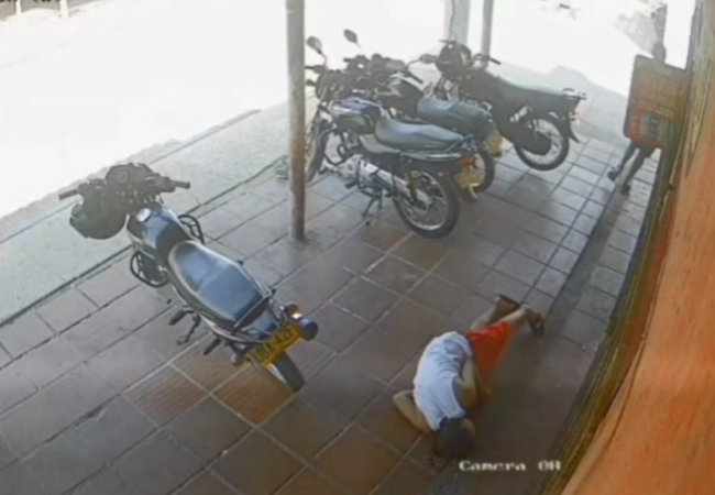 La grabación, que comenzó a circular en las últimas horas, muestra a dos hombres movilizándose en motocicleta. El parrillero, sin bajarse del vehículo, desenfunda un arma de fuego y empieza a disparar de manera indiscriminada contra dos personas que se encontraban en la esquina del establecimiento.