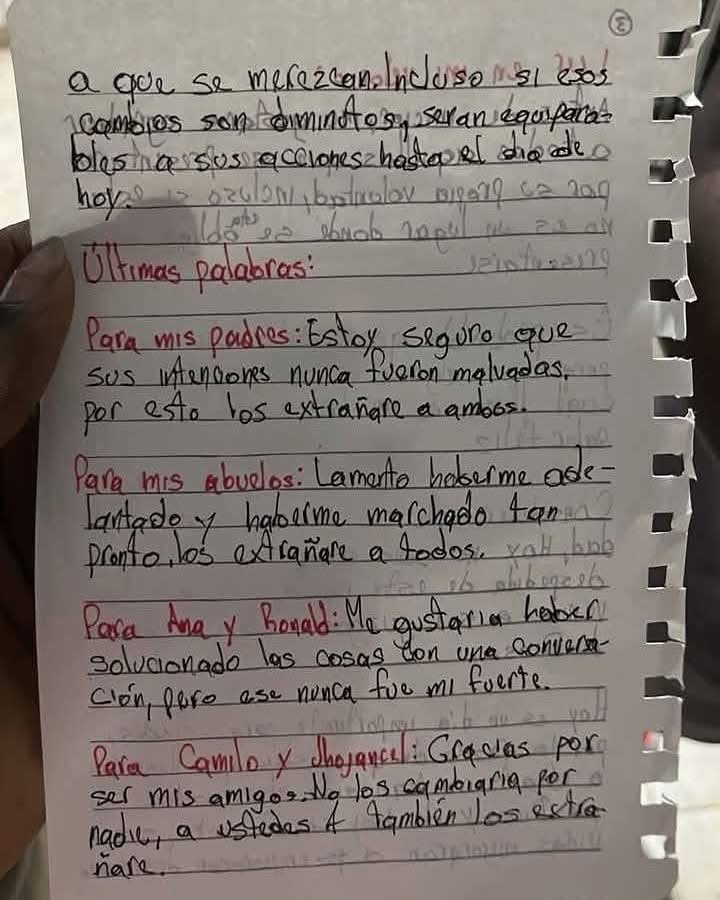 Se quitó la vida tras lanzarse de un quinto piso en Medellín. En cartas dirigidas a su familia, expresó gratitud, dio instrucciones para su despedida y reveló el profundo vacío emocional que lo consumía.