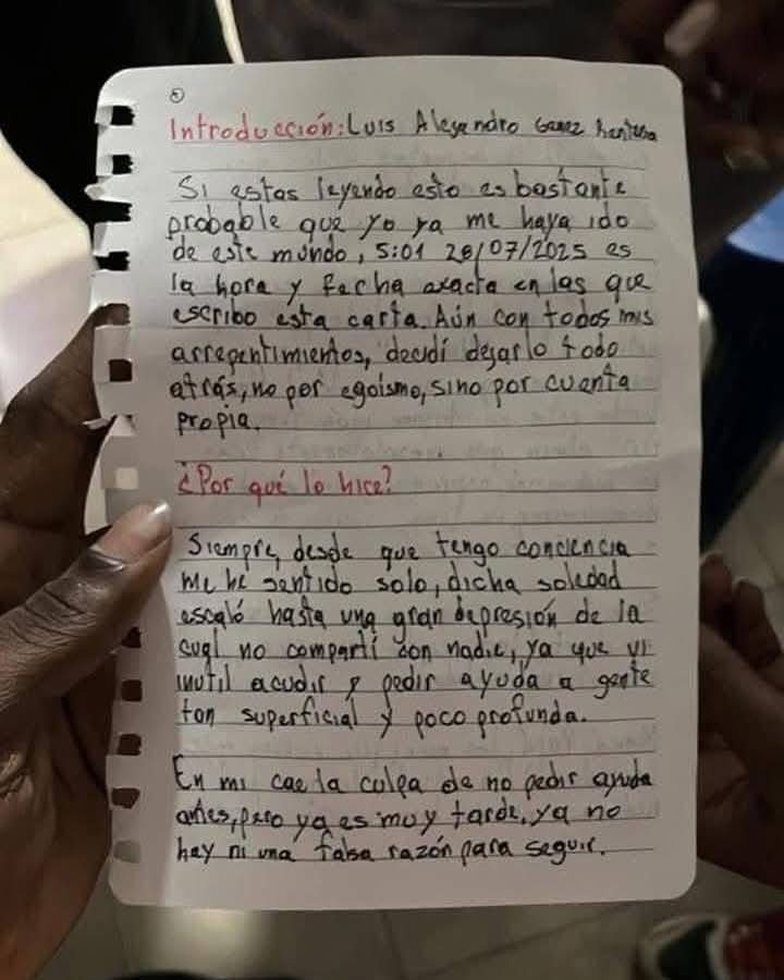“No podemos seguir ignorando el dolor emocional de una generación que grita en silencio”, escribió un usuario en X. “Luis pudo ser mi hijo, mi hermano, mi amigo”.
