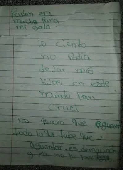 Durante la inspección de la escena, los investigadores hallaron una carta manuscrita atribuida a Jiménez Valdez. En ella, pedía perdón y señalaba que “no quería que mis hijos crecieran en un mundo cruel”. El documento fue incautado y es objeto de análisis para confirmar su autenticidad y establecer las posibles motivaciones detrás de la tragedia.