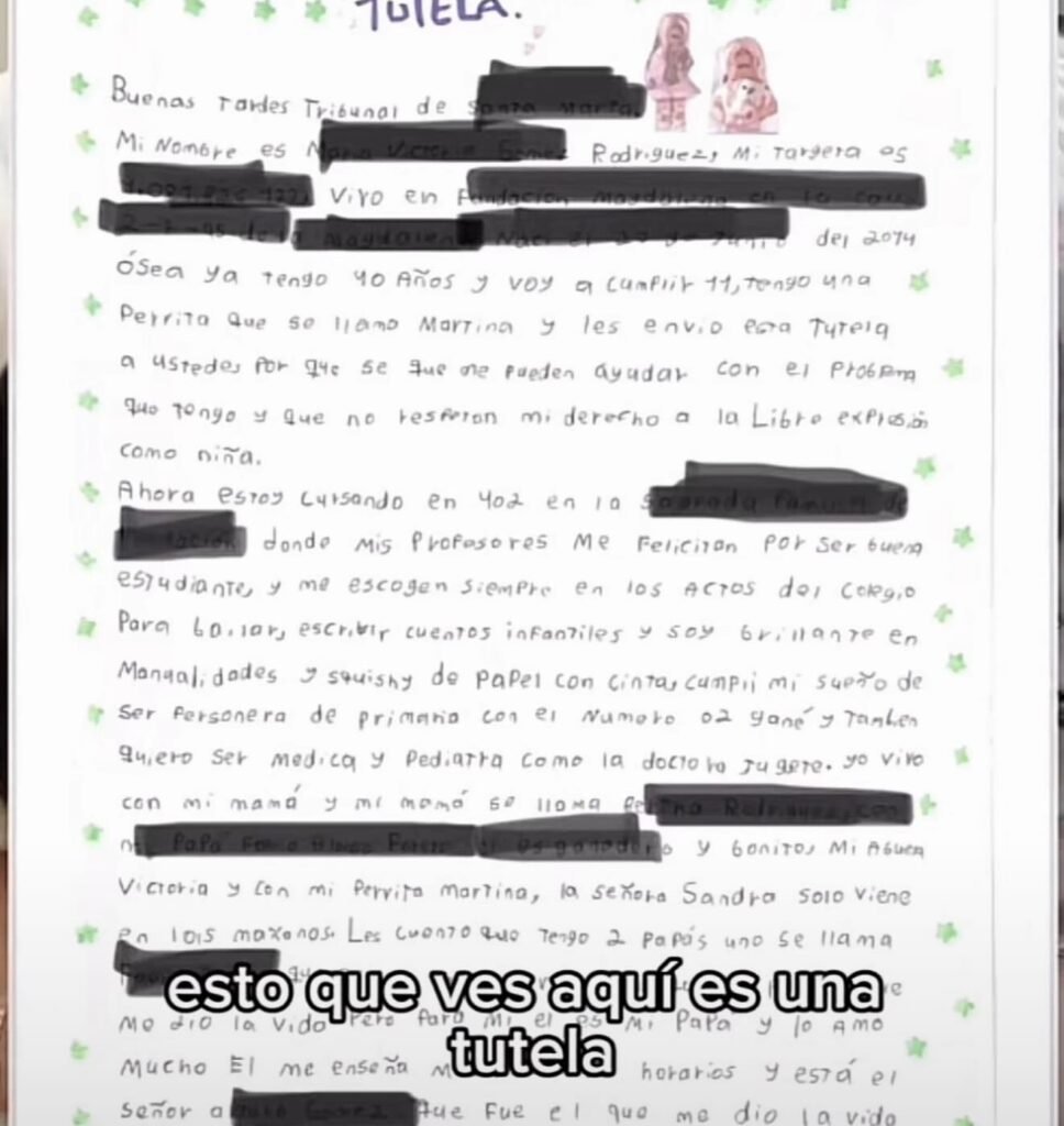Niña de 10 años de Fundación, con su puño y letra presentó una tutela contra su padre y la ganó