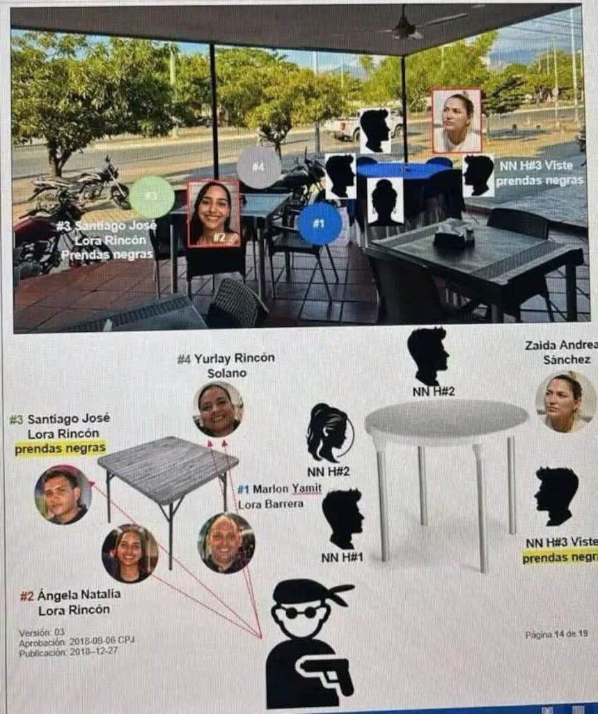 José Miguel Leal, uno de los sicarios, ingresó al restaurante con el arma desenfundada. Sin titubear, disparó contra Marlon, luego contra Ángela, después Santiago y, por último, Yurlay. En cuestión de segundos, la familia quedó inerte sobre la mesa aún servida.