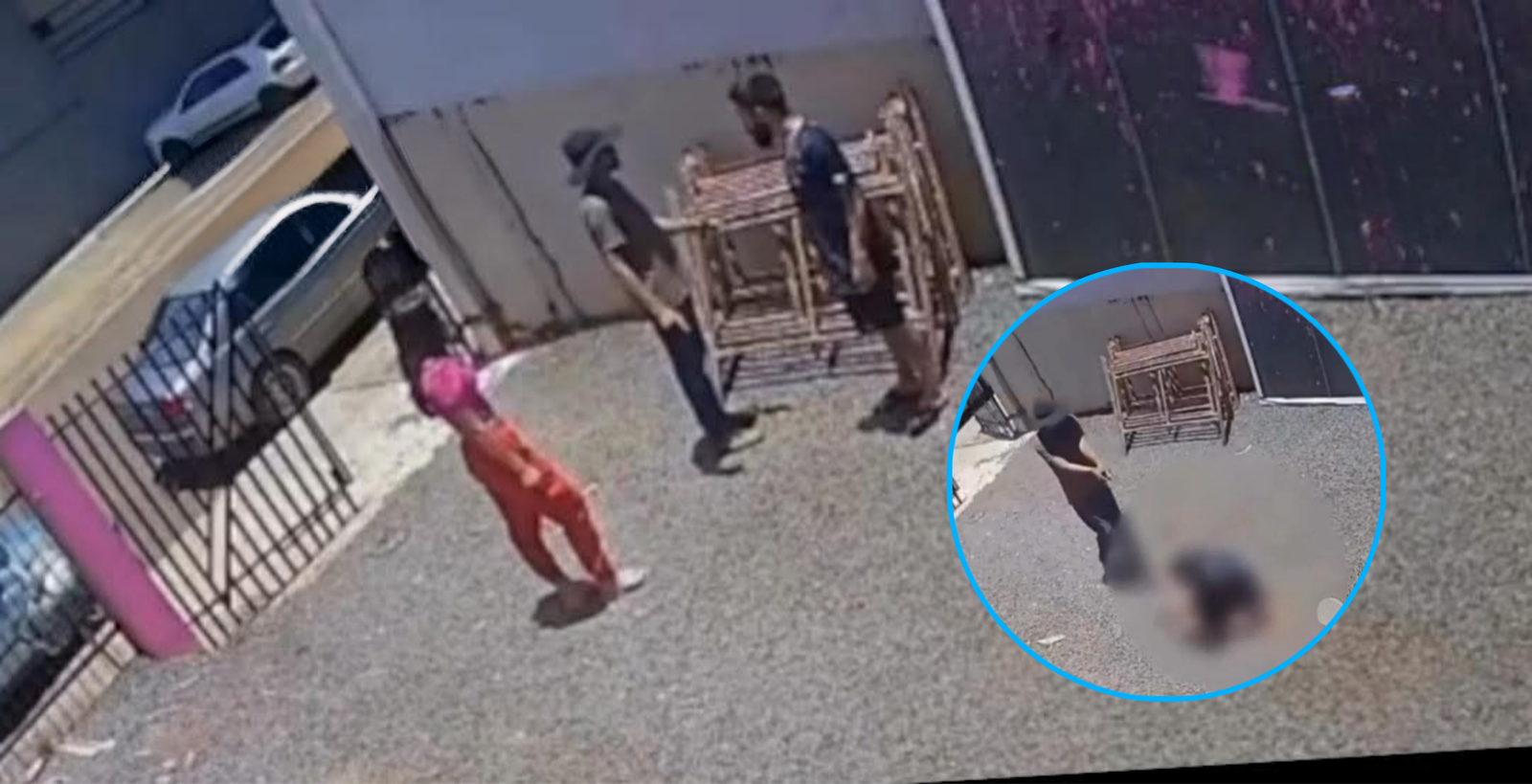 En las imágenes se observa a Juliano, de 32 años, en la entrada principal del inmueble cuando el padre de la mujer llega al lugar para confrontarlo por su comportamiento violento.