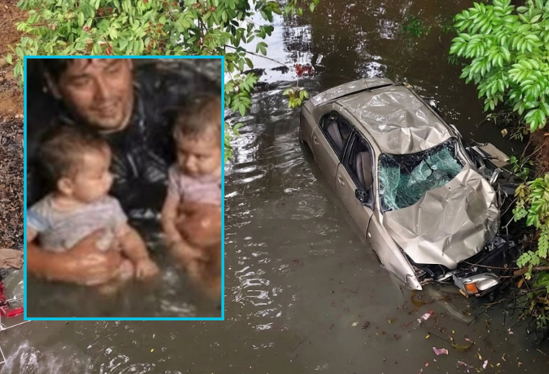 Padre y sus dos bebés sobreviven milagrosamente a una caída al vacío tras estallar una llanta de su vehículo