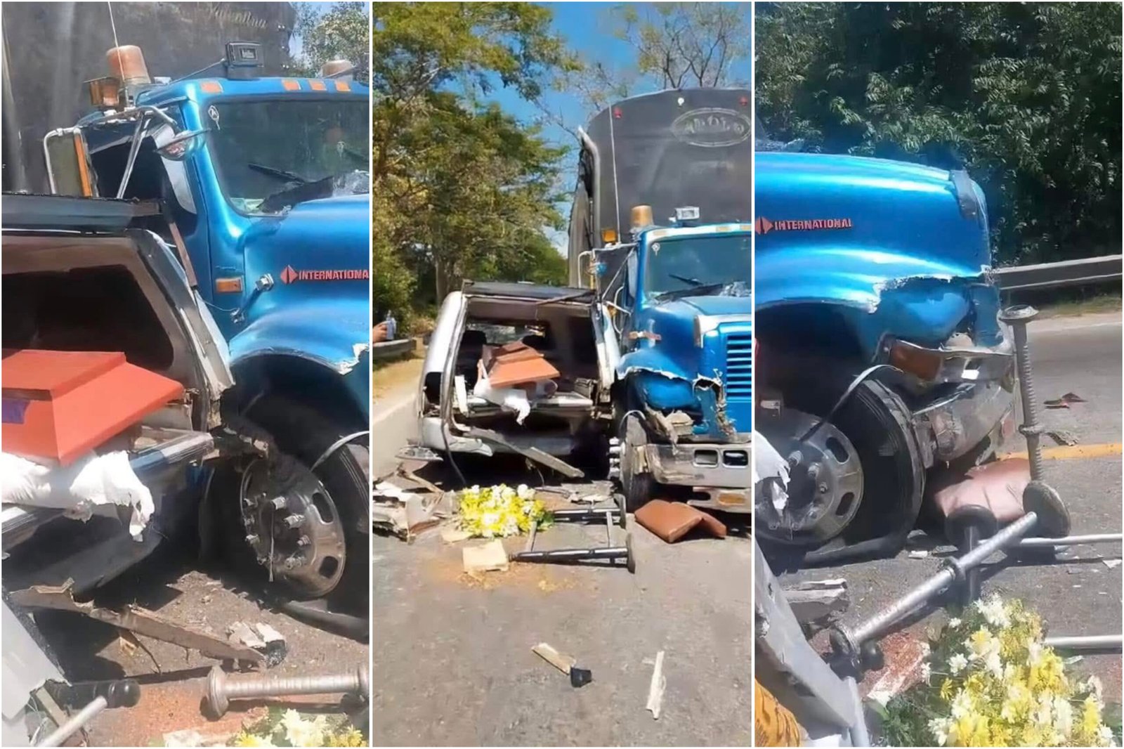 El cadáver terminó en la carretera tras el impacto, pero testigos lo recogieron y lo devolvieron a su ataúd.
