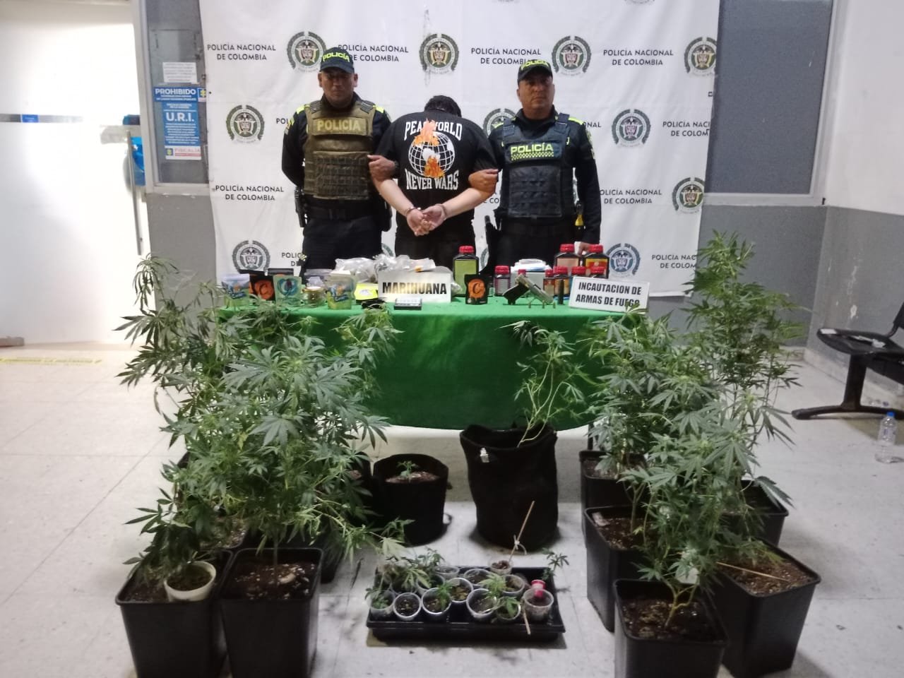 Policía llegó a casa atender caso de violencia intrafamiliar y encontró un cultivo de marihuana y arma de fuego