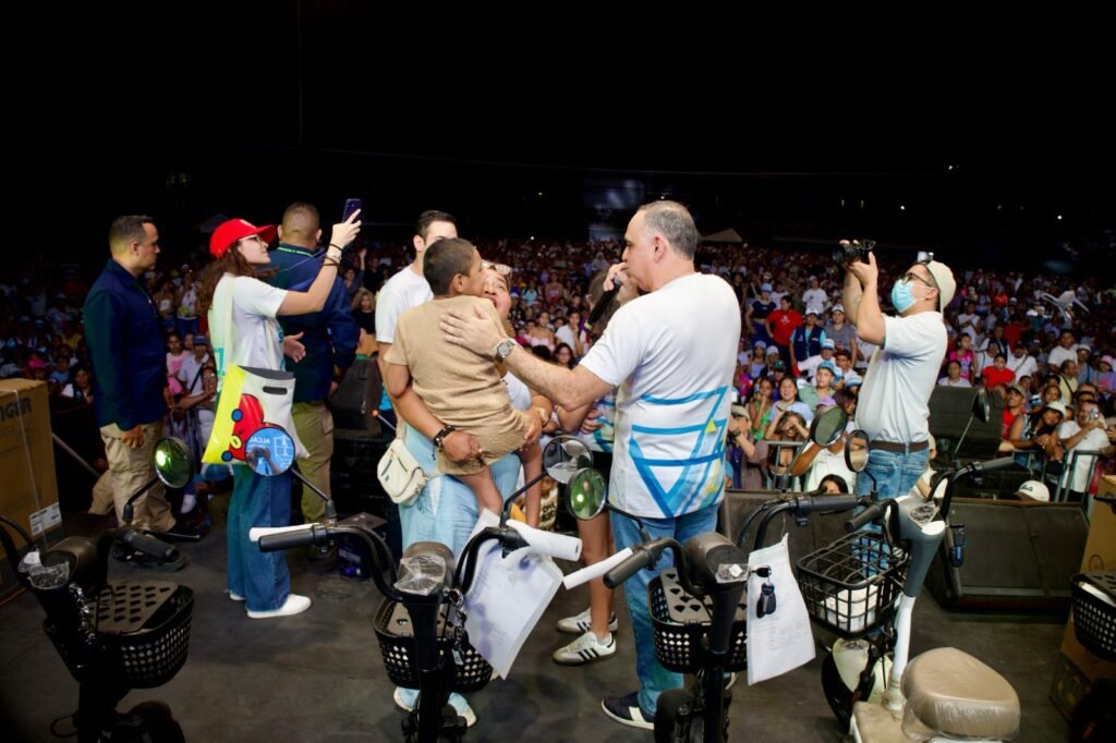 Y la transformación se sintió cuando comenzaron los sorteos. Neveras, televisores, lavadoras, motocicletas eléctricas y otros electrodomésticos —casi 200 premios— cambiaron de manos en minutos. Para muchos asistentes no fue un regalo simbólico: fue un alivio inmediato para la casa, para el rebusque diario, para la economía familiar.