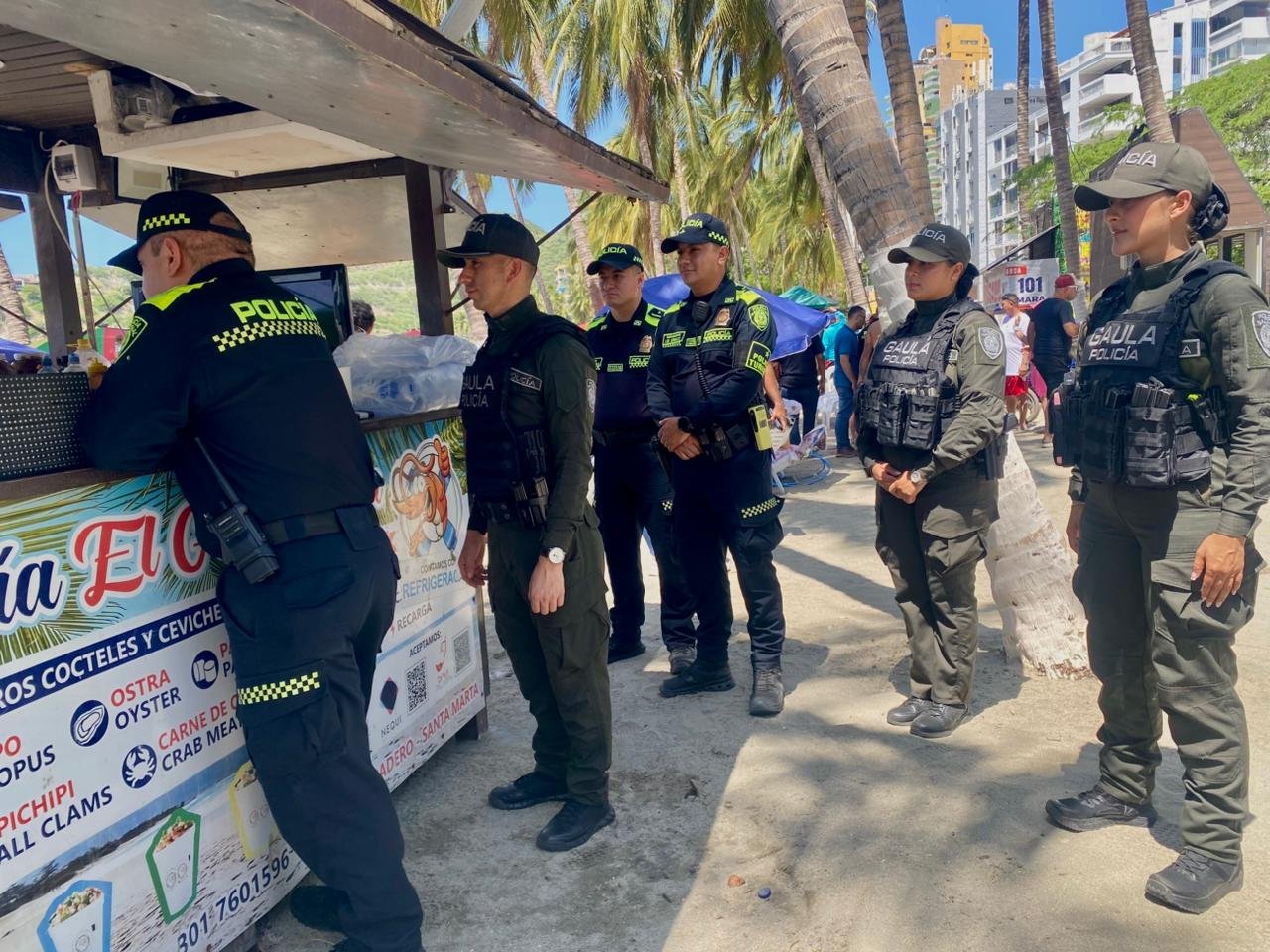 Ante el avance del fenómeno, la Policía Nacional desplegó un grupo especial del GAULA junto al Grupo CEAEX para reforzar la presencia institucional en El Rodadero.