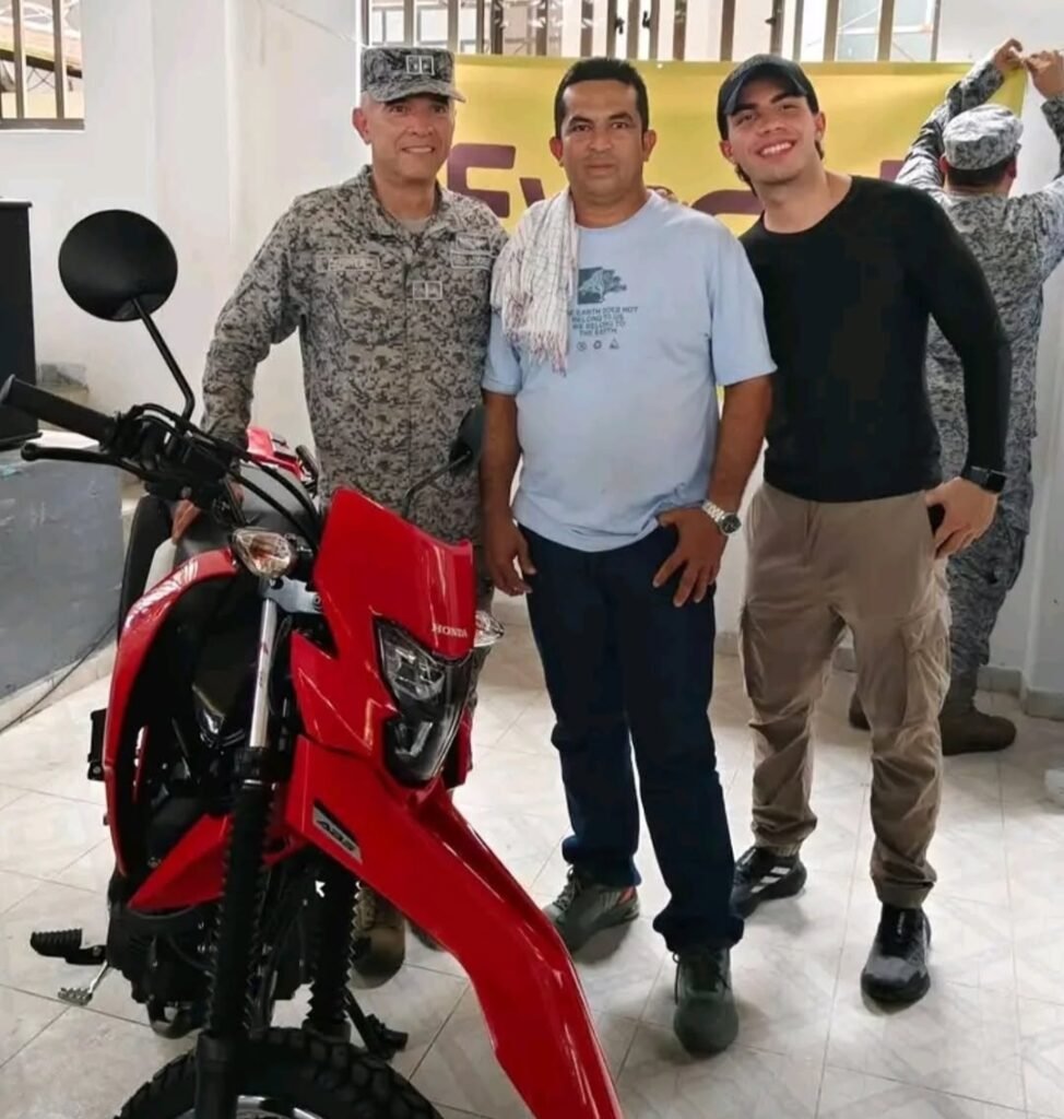Recompensaron con una motocicleta nueva a carnicero que salvó a varios militares en accidente aéreo