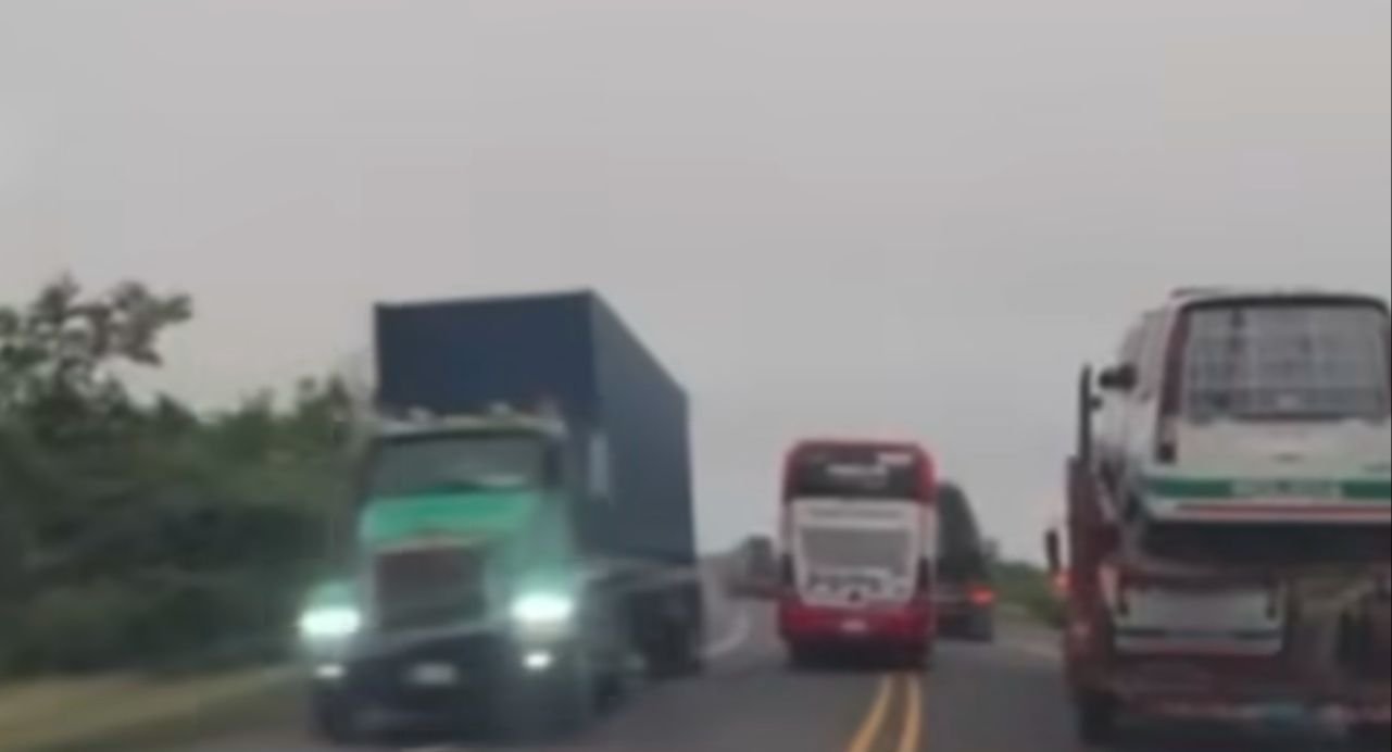 Conductor de bus pone en riesgo la vida de sus pasajeros atravesándose a una tractomula