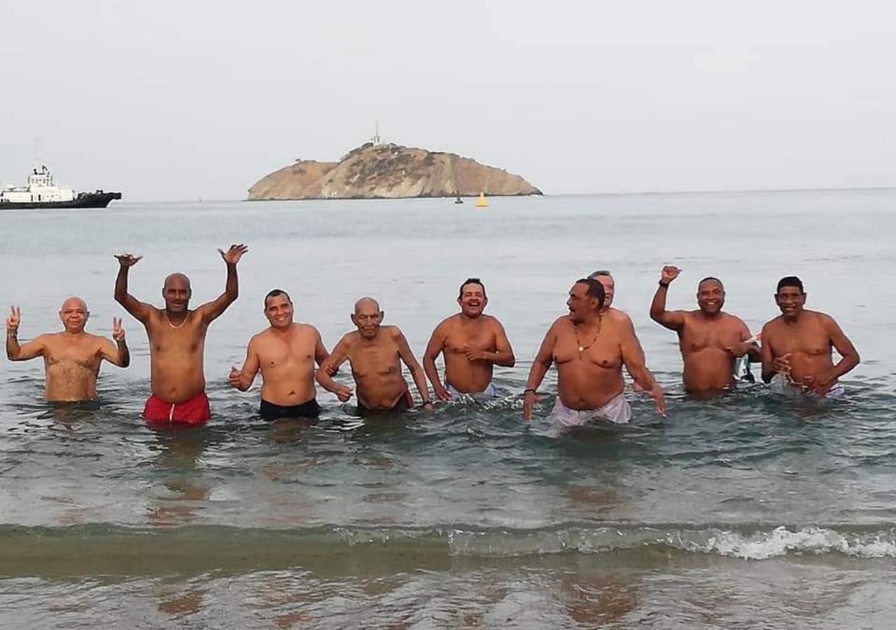 Este grupo de veteranos samarios se reúne todos los días a bañarse en la Bahía. Aseguran que el mar nunca les ha hecho daño y que, por el