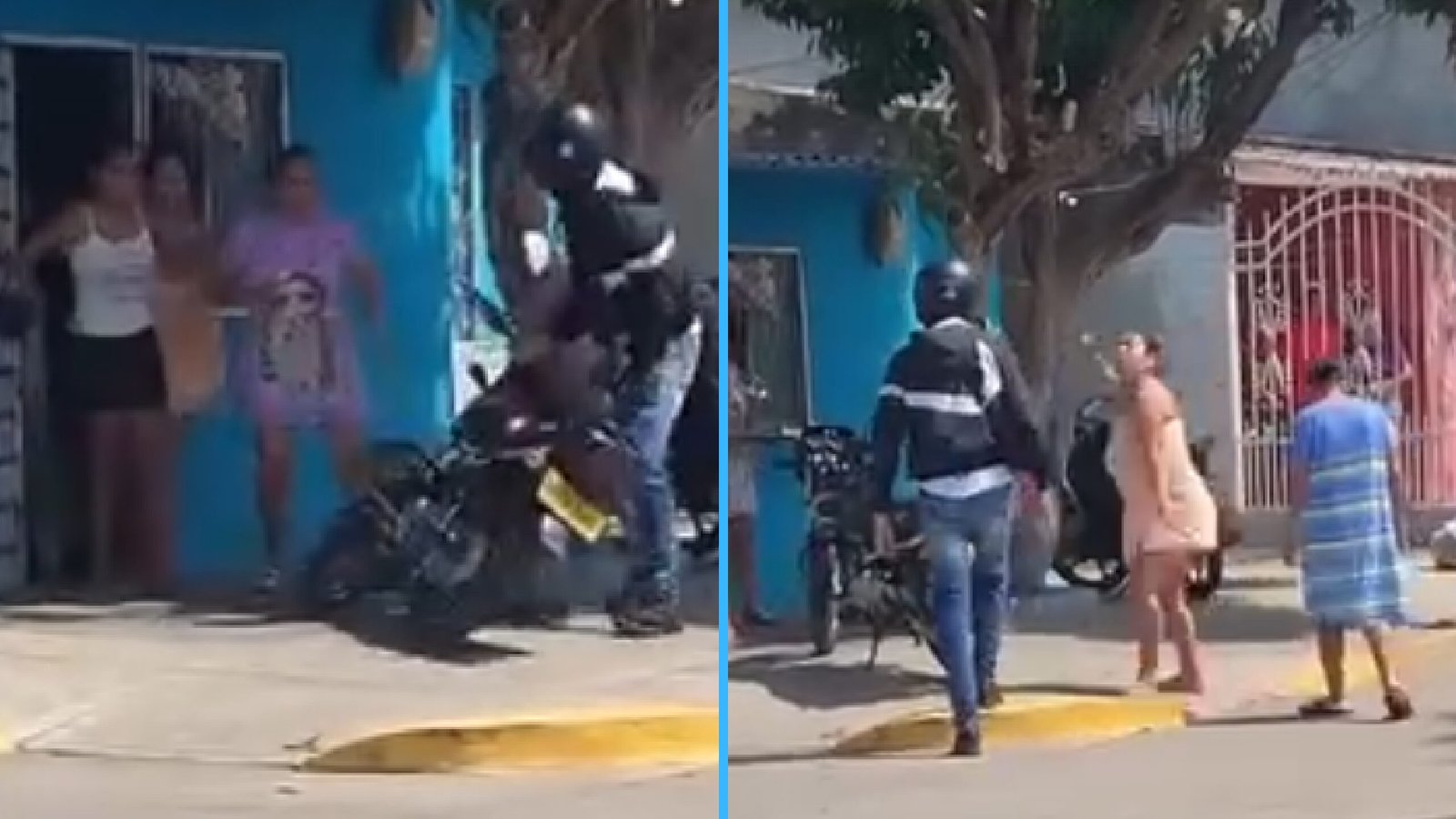 Mujer en toalla se enfrenta a cobradiario derribándole la moto y golpeándolo por 10 mil pesos