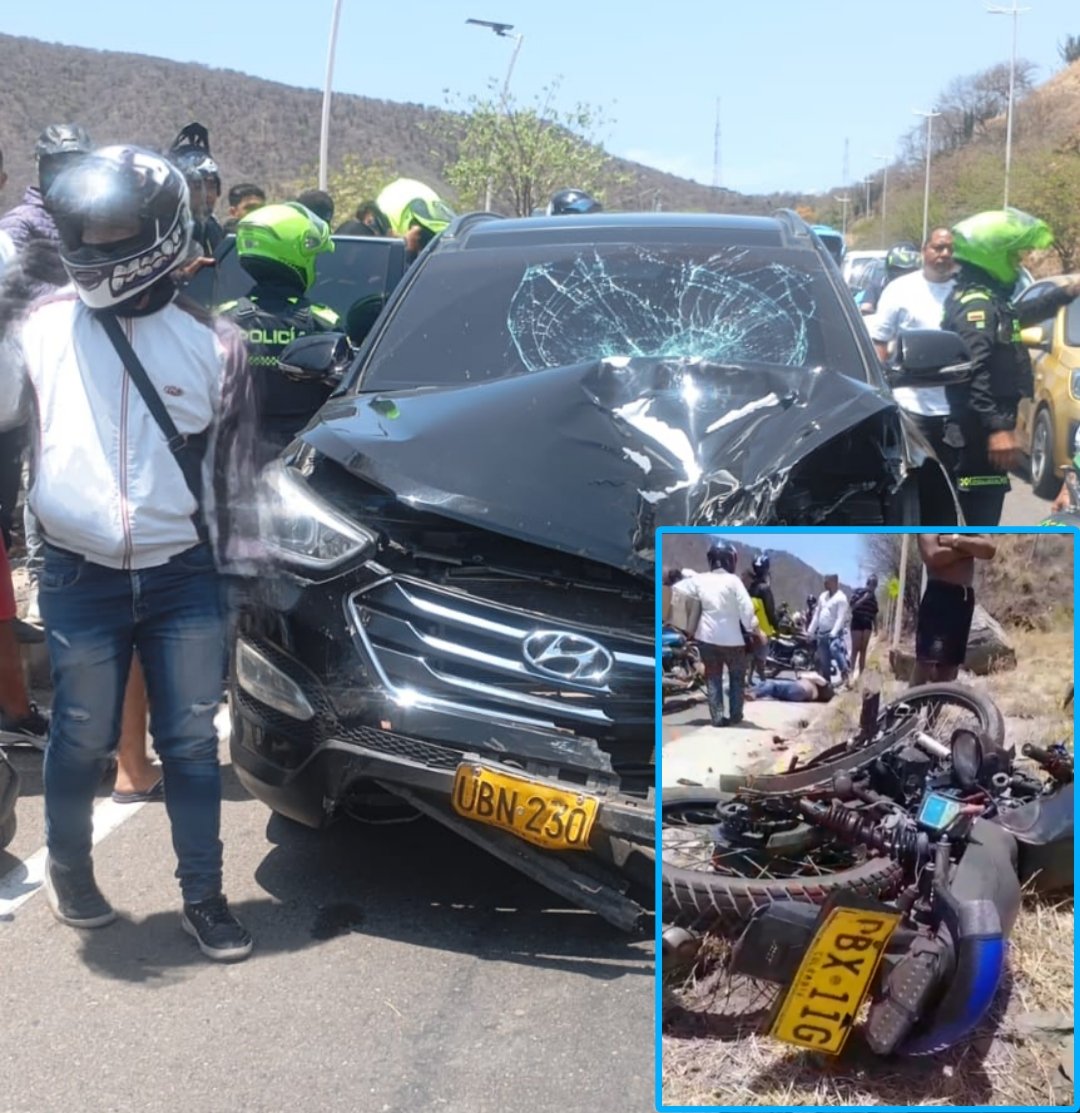 El carro quedó con muchos destrozos, pero lo más grave fue el estado del motociclista.