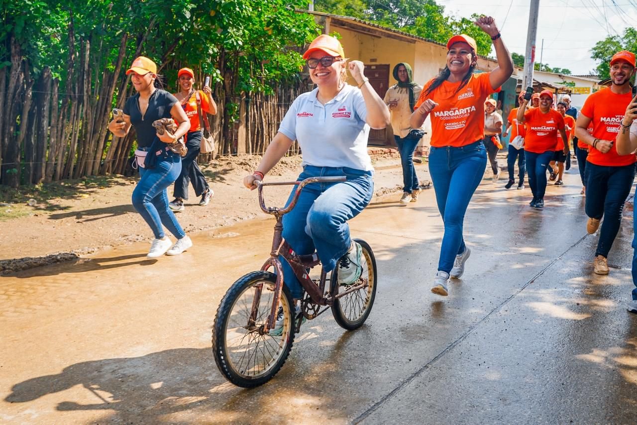 Margarita Guerra pedalea firme rumbo a la Gobernación: El Piñón se volcó a apoyarla bajo la lluvia