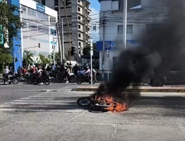 Un presunto atraco en el cruce de la Avenida del Río con la Avenida del Libertador dejó un hombre herido por arma de fuego, una motocicleta incinerada y