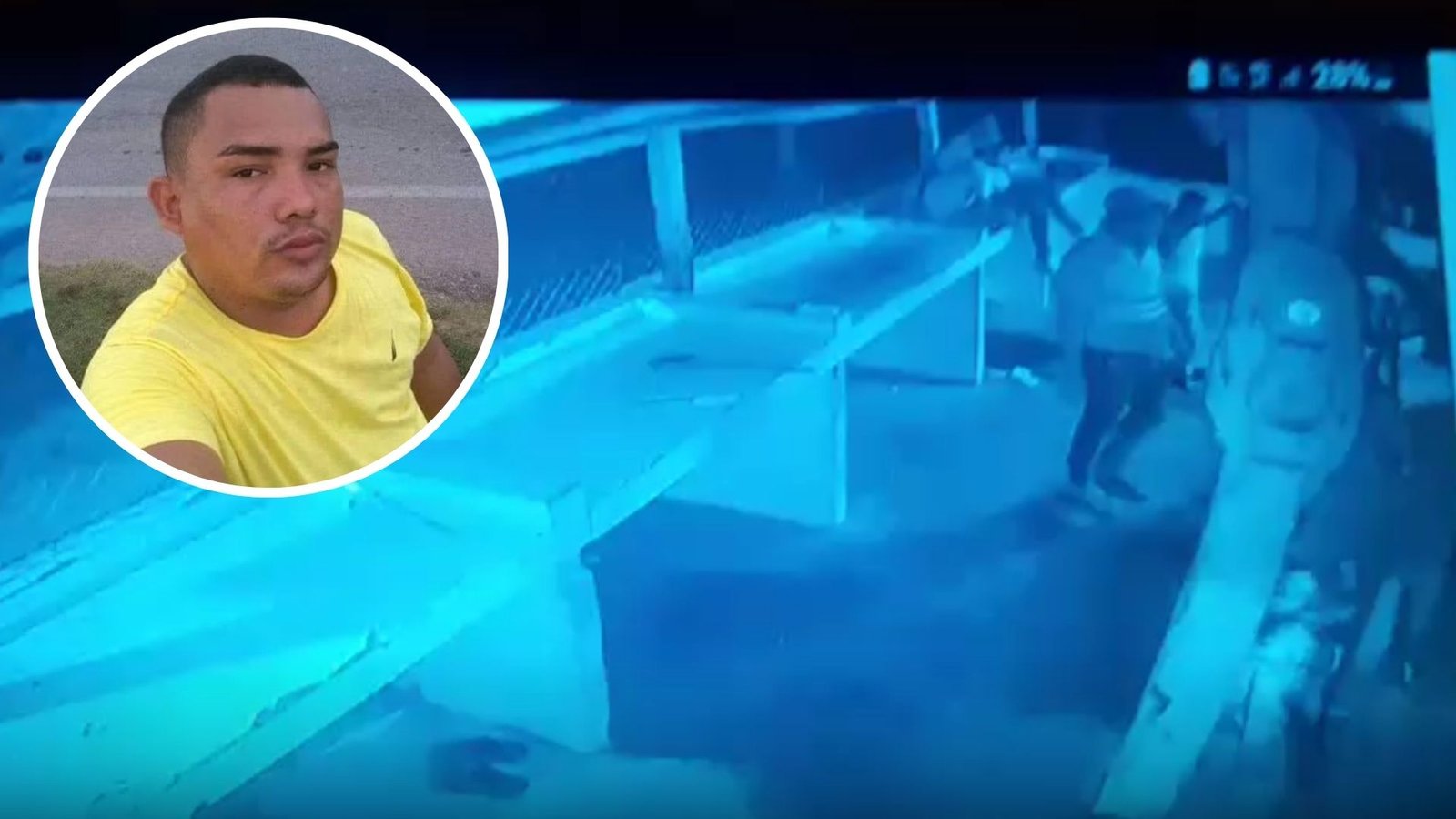 Un video de una cámara de seguridad muestra cómo aparece el pistolero por la espalda y lo tumba de donde estaba sentada hablando con otras personas.