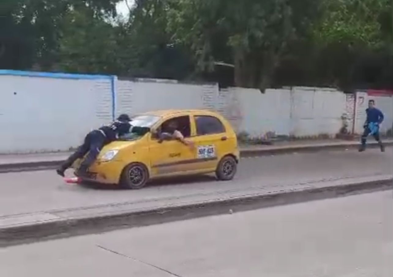 Agente de tránsito se lanza sobre taxi para evitar que huyera de multa