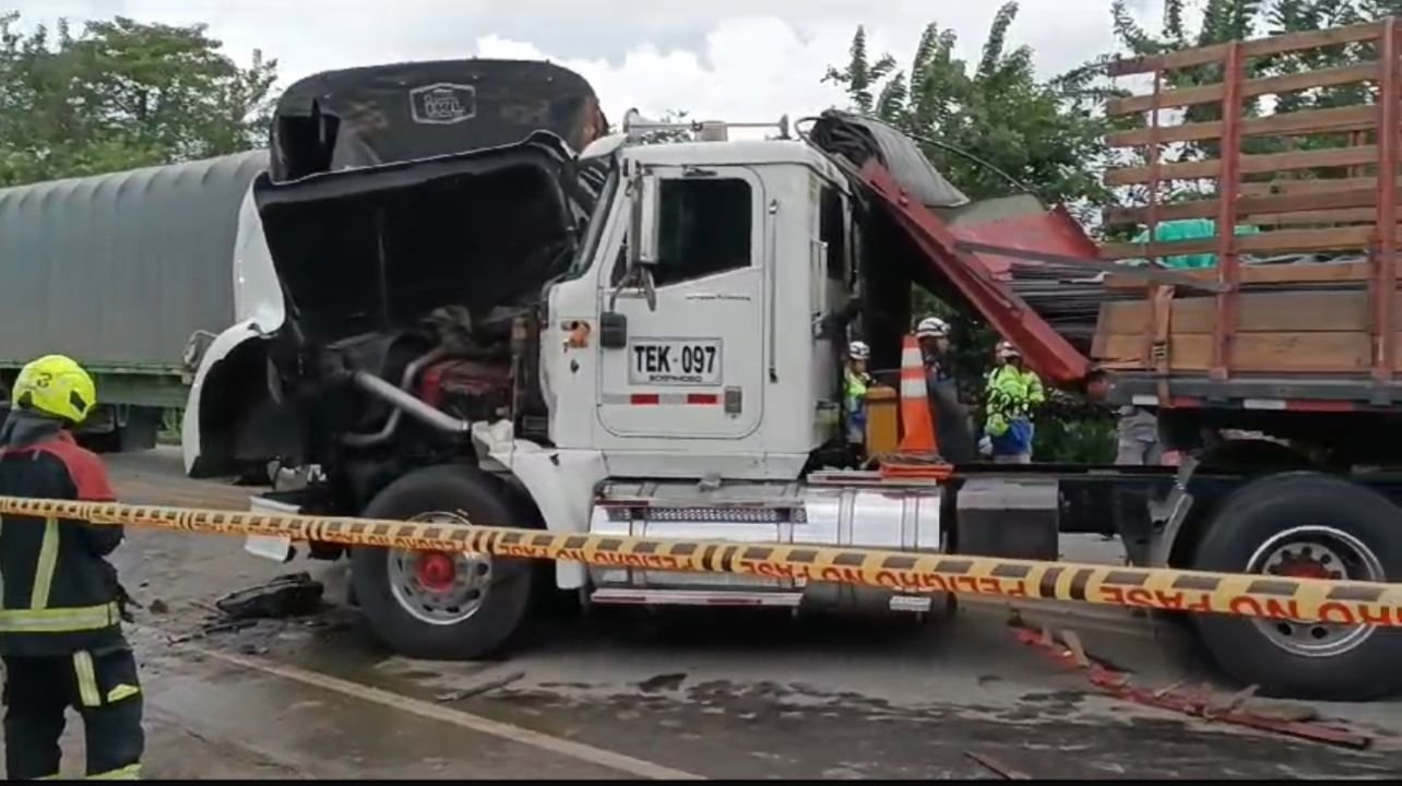 Un fuerte choque entre dos mulas provocó que un bus de Copetran colisionara en la vía entre la Vuelta del Cura y Guamachito, cerrando el tráfico en la