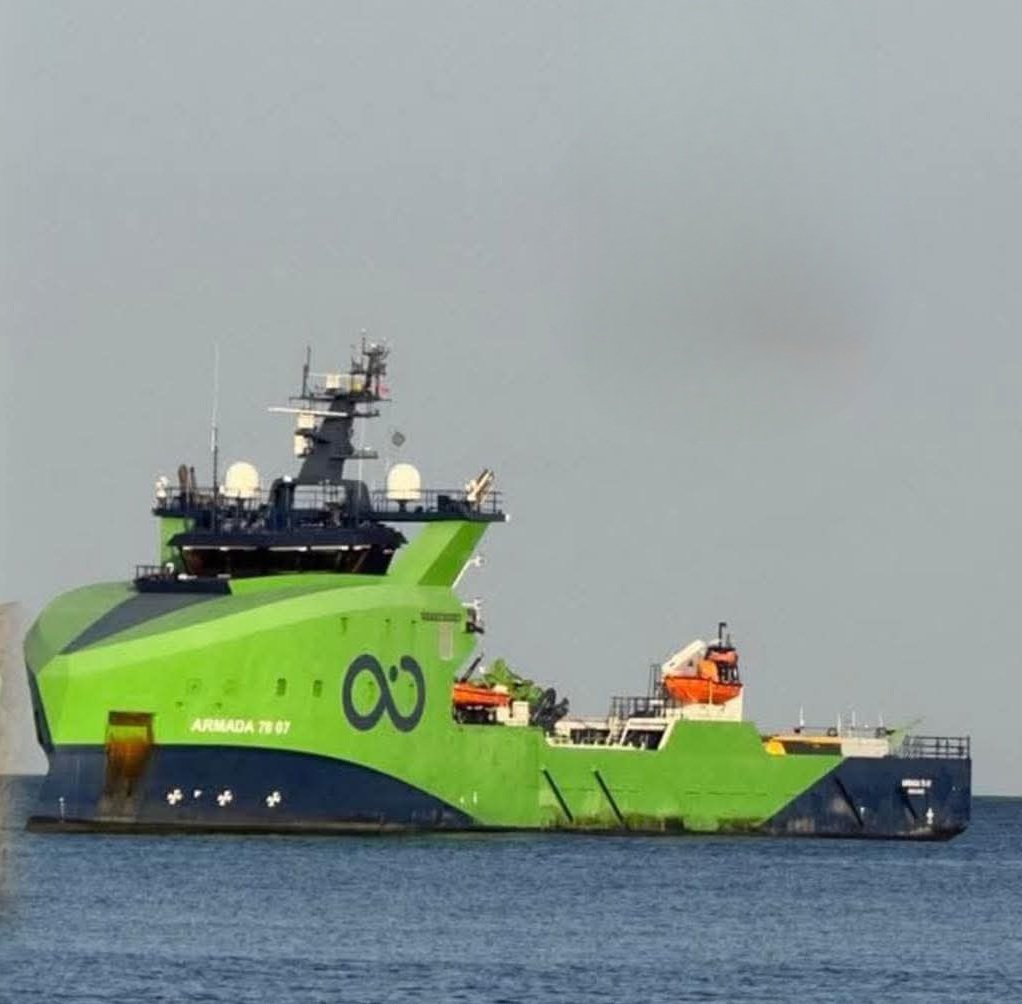 El barco que captaba todas las miradas tenía nombre y origen: Armada 78 07, una embarcación de bandera de Singapur construida en 2023 y concebida como parte de la nueva generación de buques tecnológicos diseñados para operar en mar abierto.