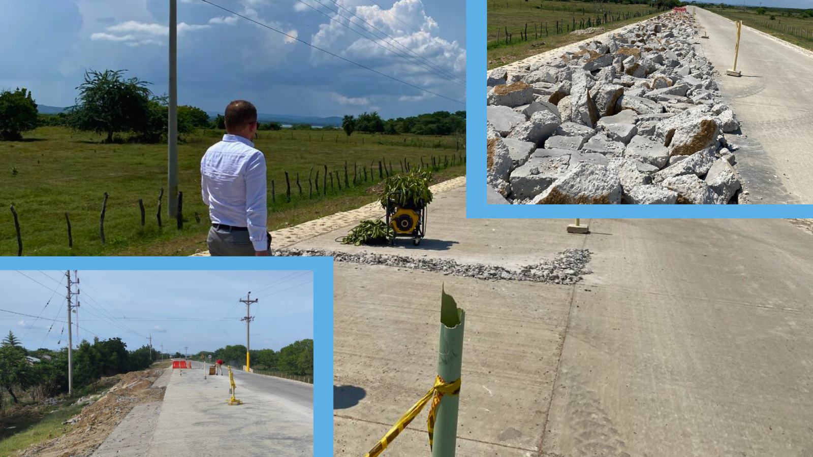 Francisco Martínez Mercado, presidente de la veeduría ciudadana del proyecto, denunció las irregularidades en la construcción, señalando que el cambio de asfalto a concreto no fue explicado de manera suficiente por el contratista ni por el Invías.