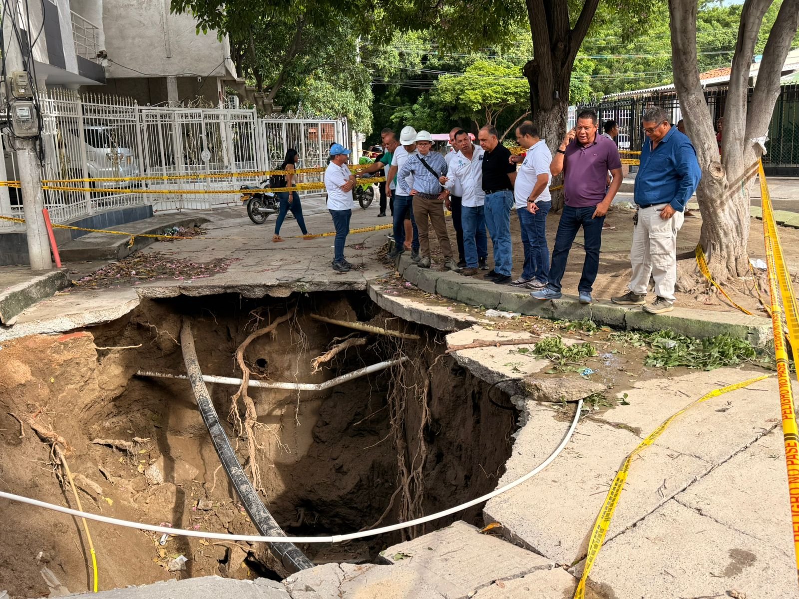 El lunes en la mañana, el alcalde de Santa Marta, Carlos Pinedo Cuello, llegó al lugar del siniestro acompañado por la Oficina de Gestión del Riesgo y la empresa de servicios públicos Essmar. Tras evaluar la magnitud del hundimiento, anunció la convocatoria a un consejo extraordinario de gestión del riesgo.